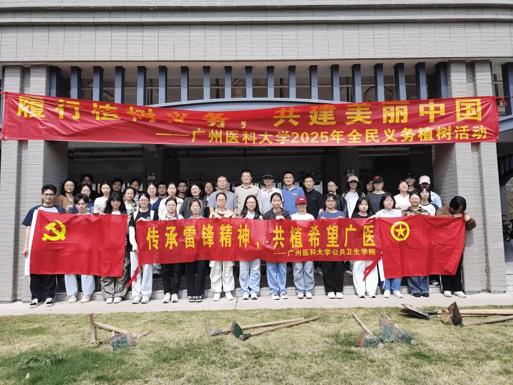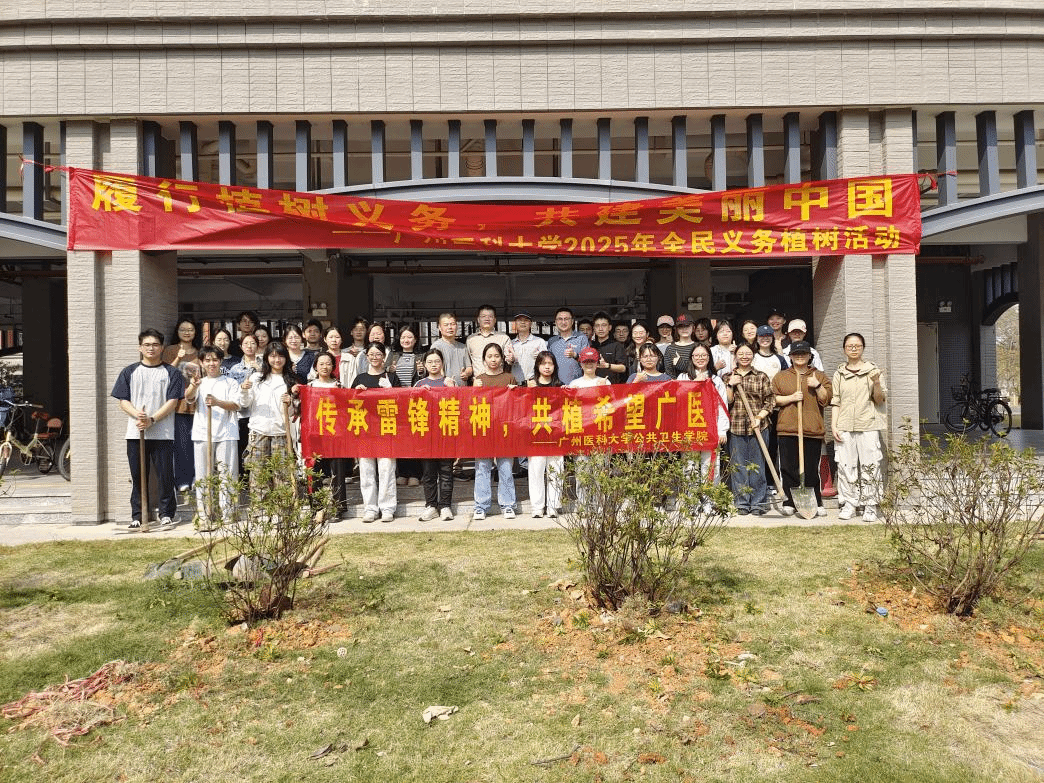 为深入践行习近平生态文明思想,营造爱绿植绿护绿的良好氛围,2025年3月12日,银河 党委李羽书记、刘宇珊副书记携学生办全体辅导员、学生第二党支部党员代表和各专业学生代表30余人,于银河 番禺校区开展了“传承雷锋精神,共植绿美广医”主题植树活动。