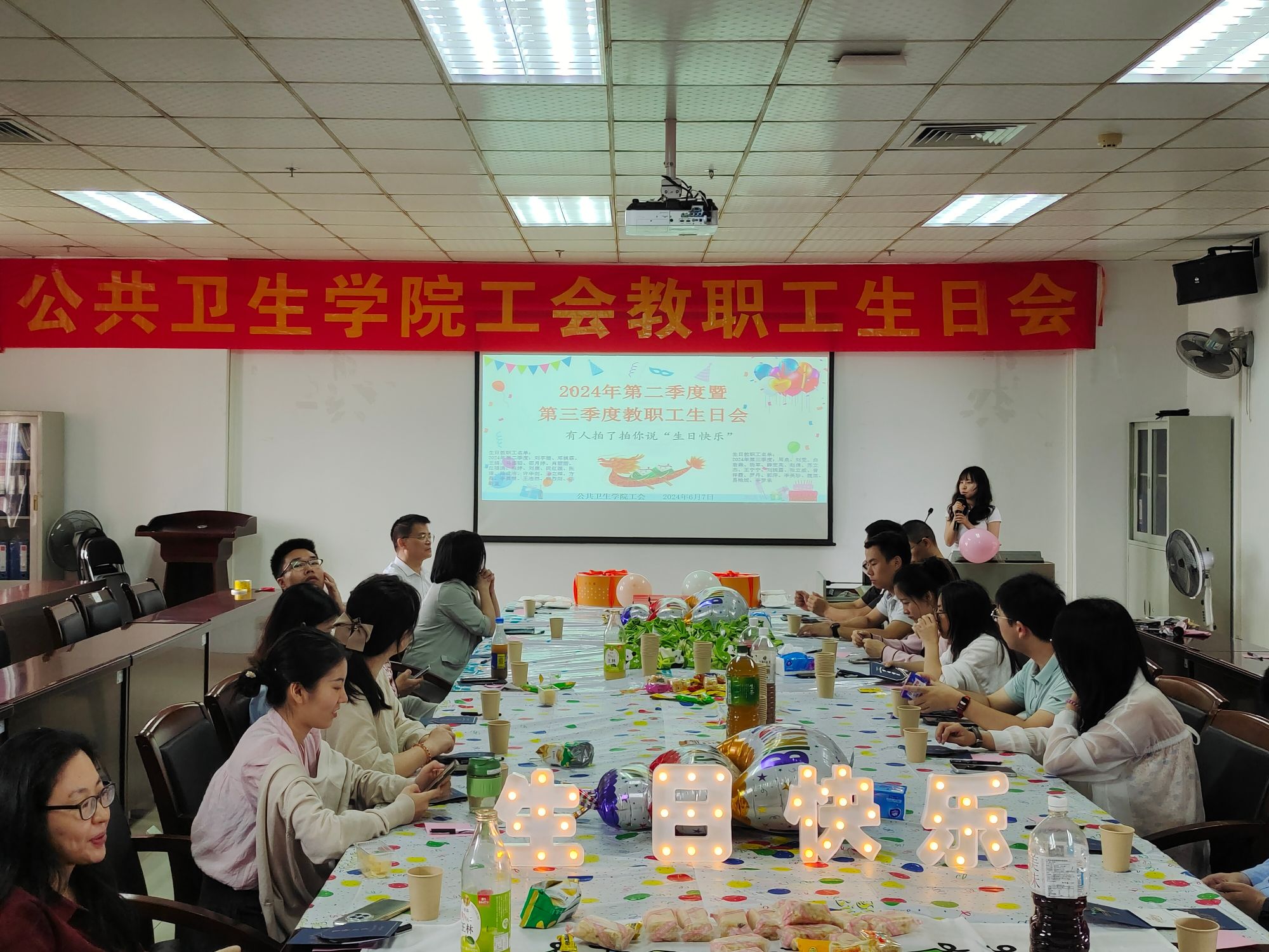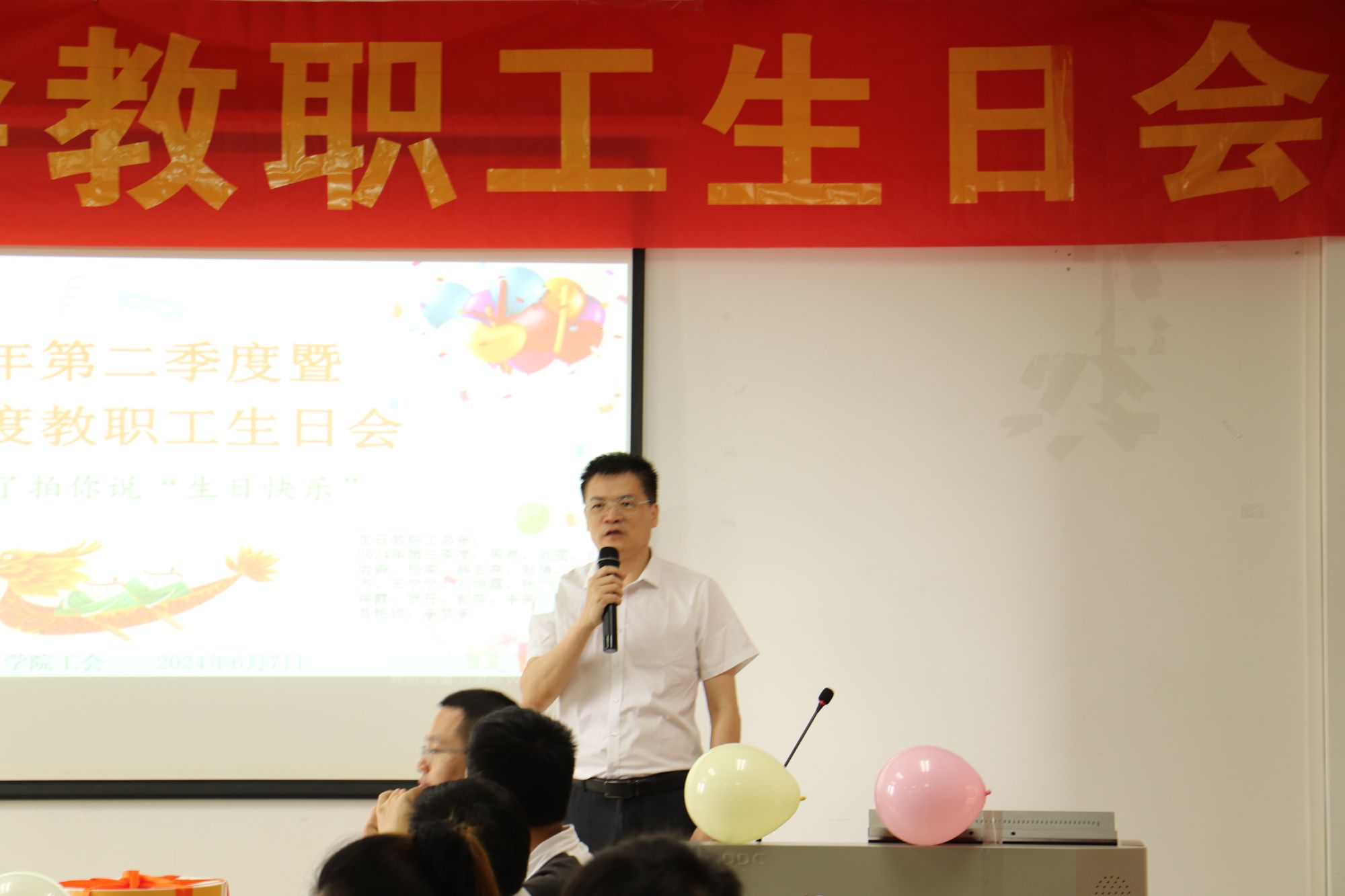 6月7日上午,银河 在番禺校区银河 会议室举办2024年第二、第三季度教职工集体生日会。活动当天,银河 党委书记、工会主席李羽,银河 党委副书记、工会副主席刘宇珊及30余位教职工齐聚一堂,共同为寿星们送上最真挚的祝福,活动现场布置得温馨而雅致,彩色的气球、温馨的横幅以及精心准备的蛋糕,都为这场生日会增添了浓厚的氛围。