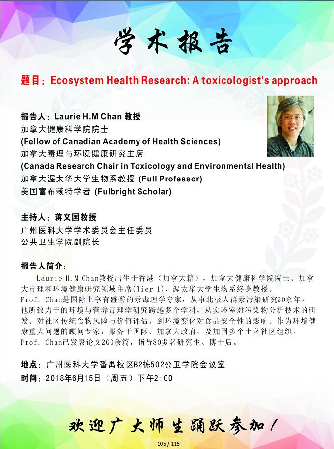 学术报告--Laurie H.M Chan--Ecosystem Health Research:A toxicologist's approach