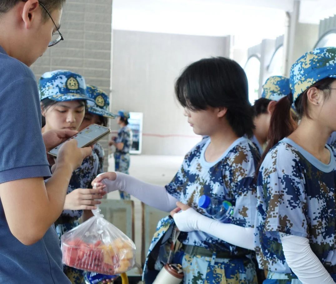 随后,李羽书记和刘宇珊副书记带领老师同学向全体新生发放了清凉饮料、水果等慰问品,并勉励大家继续积极认真参加军训活动,尽快适应大学生活。